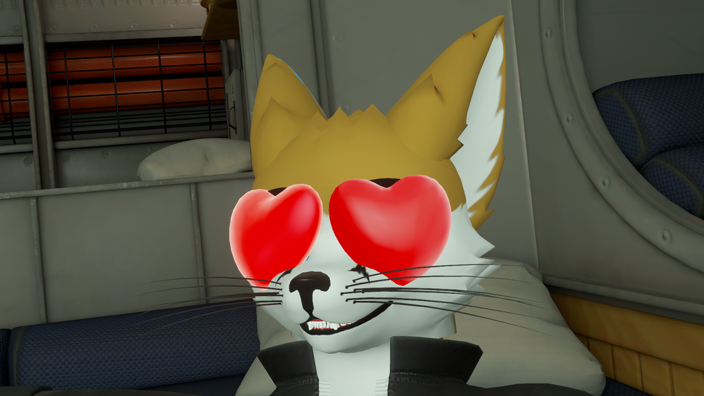 Show your affection in a cartoonish way with these hearts that appear over your eyes! Can be activated through your radial menu or a gesture combination.